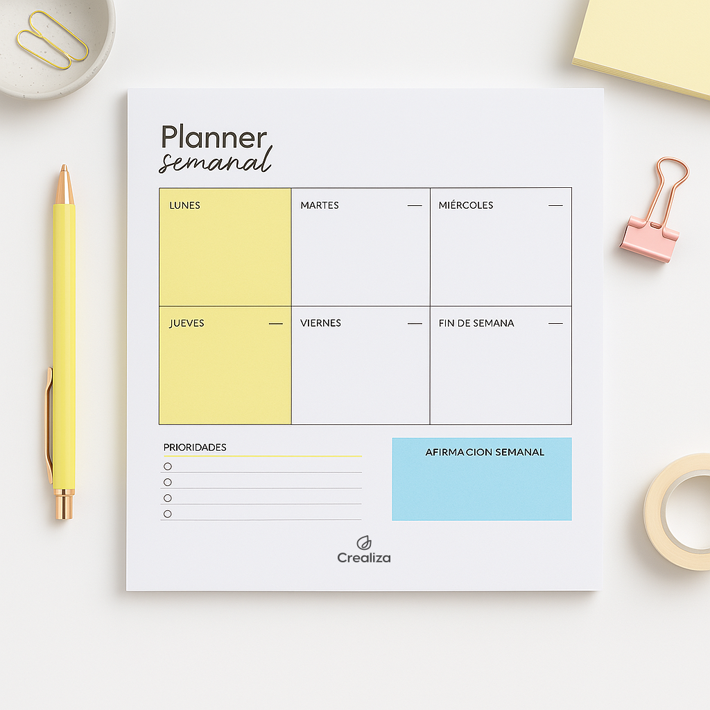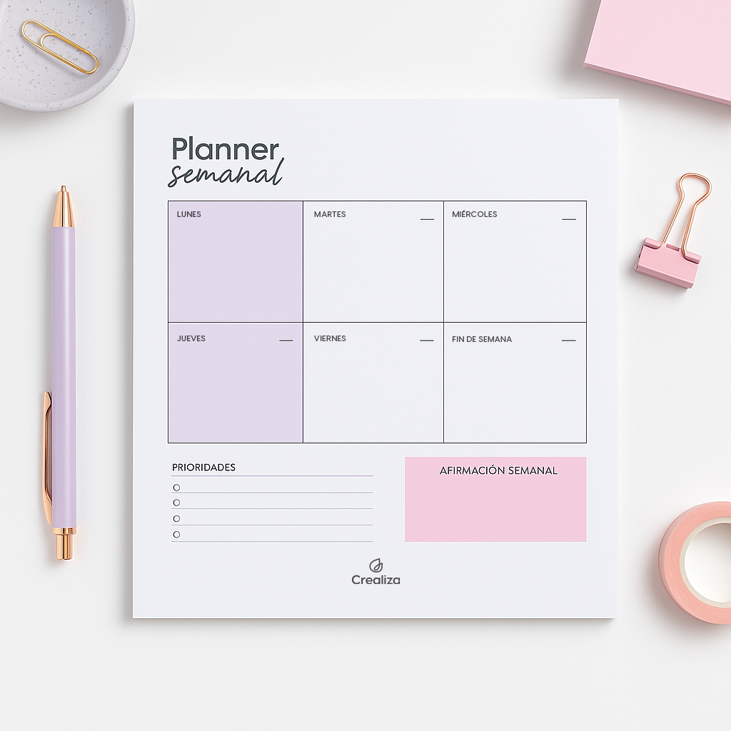 This weekly planner is designed to help you prioritize what truly matters, stay on track with your daily goals, and start each week with a powerful affirmation to inspire your mindset.
